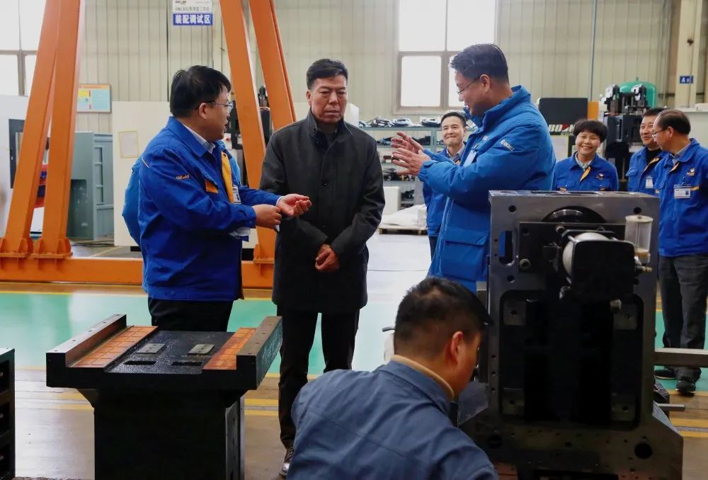 在宝鸡机床的整机装配、数字化车间,,,,,,,,严董事长详细相识企业一季度生产使命安排及完成情形,,,,,,,,对企业新产品研发、智能产线等重点项目举行现场指导。。。。。。